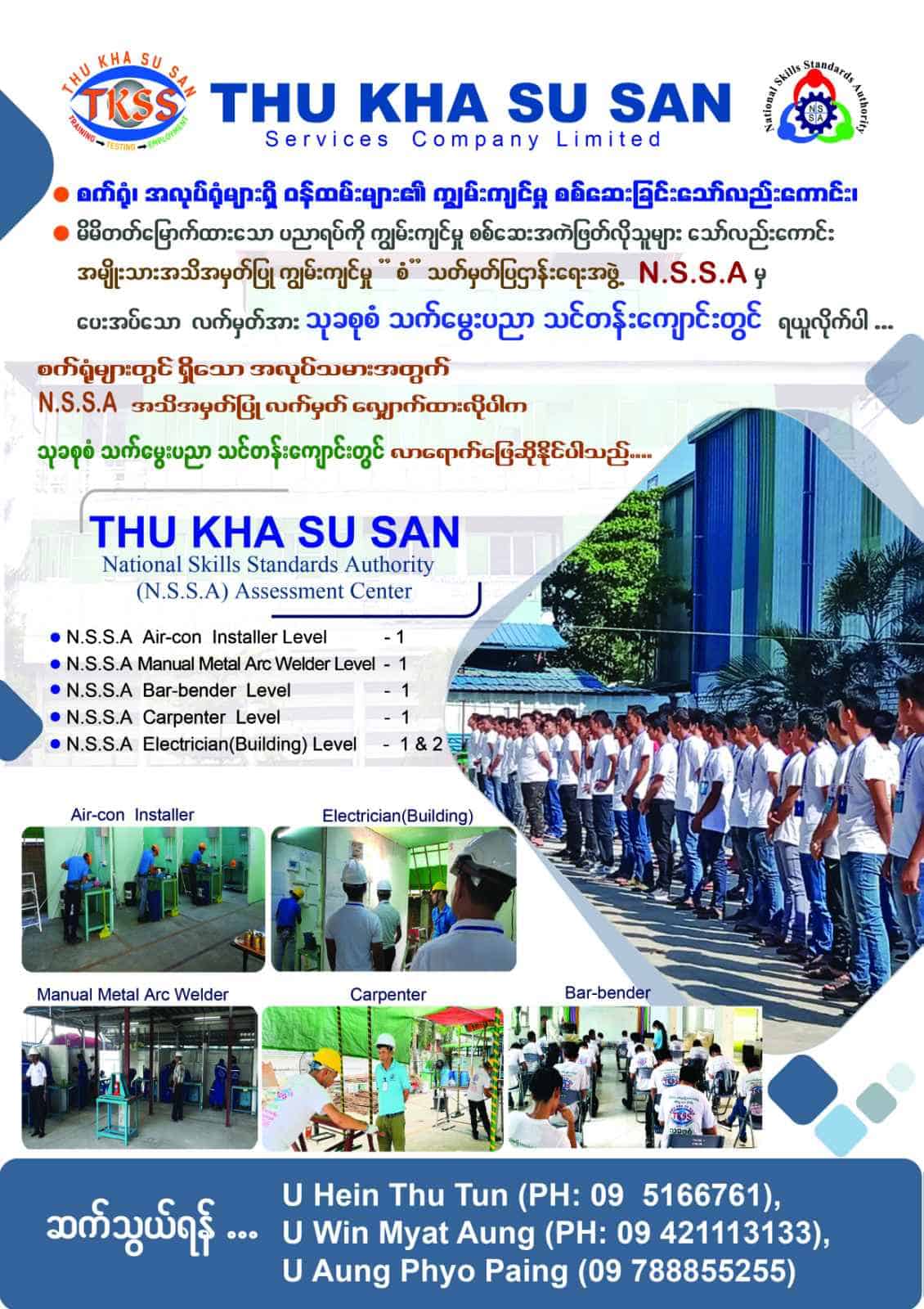 Take your professional skill test and get your National Skills Stardards Authority certificate at Thu Kha Su San.